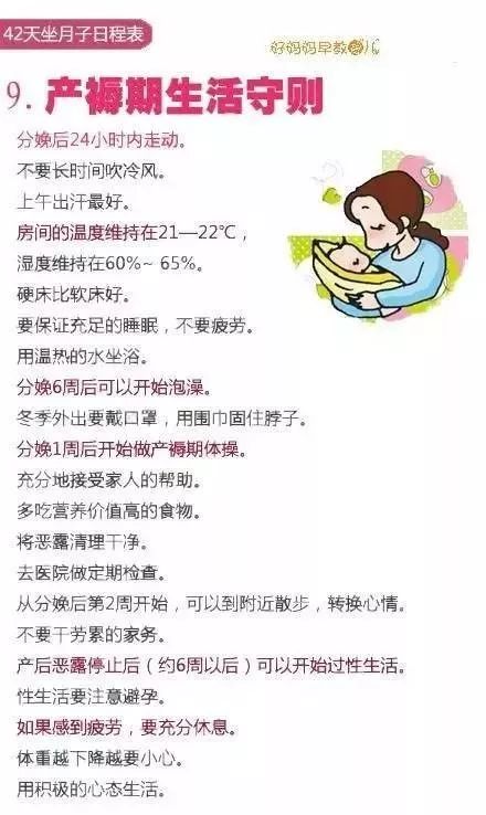 现代版42天坐月子日程表