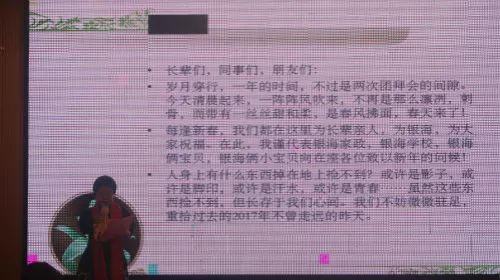 伴随着2018年的到来,她寄予了新的期待,新的目标,她说:“我们要把银海家政做强,做大,做实、做得掷地有声,把银海俩宝贝,银海俩小宝贝的品牌做得更亮,把“银海”推到新的高度。我们笃信,一切皆有可能。”她的声音铿锵有力,带着无比坚定的决心,让在场的每一个人的心里都为之激情澎湃,她的话语是鼓励,更是号召,引领大家继续砥砺前行,为银海家政创造出更美好的明天!
