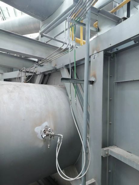山東波鴻軌道交通裝備科技有限公司配有一臺(tái)燃天然氣環(huán)形加熱爐,加熱爐初始NOx排放濃度較高,約為200mg/m3,經(jīng)我司脫硝設(shè)備處理,采用10%濃度尿素溶液做為還原劑,經(jīng)SNCR后NOx由200 mg/m3降至120mg/m3,后經(jīng)尾部SCR后最終排放值降至約20 mg/m3以下。綜合脫硝效率達(dá)到90%以上,滿足當(dāng)?shù)?/span>NOx≤50 mg/m3環(huán)保要求,且綜合脫硝效率遠(yuǎn)超設(shè)計(jì)值。